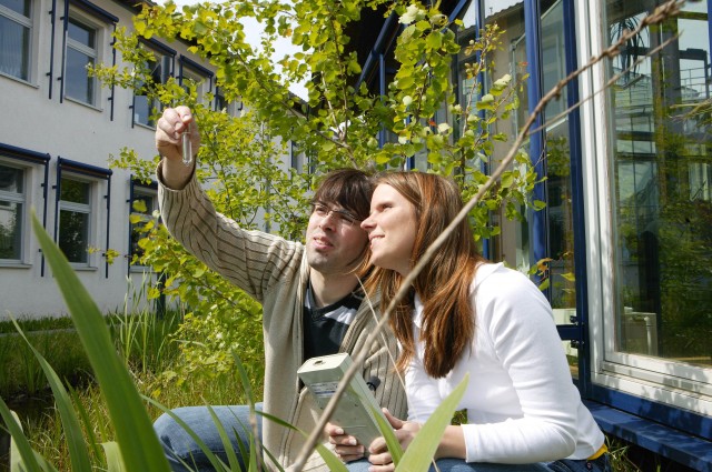 Im studentischen Leben am Umwelt-Campus Birkenfeld der Fachhochschule (FH) Trier spielt Umwelt die zentrale Rolle – sowohl innerhalb als auch außerhalb der Hörsäle. Tagsüber absolvieren die derzeit fast 2.300 Studierenden Kurse in Umwelttechnik, Umweltwirtschaft und Umweltrecht. Die Nächte verbringt zumindest ein Teil der Studierenden in Passiv- oder Niedrigenergie-Häusern. Eine weitere Besonderheit in Birkenfeld: Die FH ist die einzige Hochschule in Deutschland, die zu hundert Prozent mit erneuerbaren Energien versorgt wird – von Sonnenlicht über Erdwärme bis hin zu Biomasse. Ein Biomasse-Heizkraftwerk beliefert die gesamte Fachhochschule mit Strom und Wärme. Darüber hinaus sorgen Erdkollektoren für eine ökologische Heizung: Im Erdreich unter dem Campus erhitzt die natürliche Wärme des Bodens die Zuluft der Lüftungsanlagen. Auch die Energie der Sonne wird nutzbar gemacht, indem die Wärme der Sonnenstrahlen gesammelt und zu einem Wärmespeicher transportiert wird – für ein angenehmes Klima auf dem grünen Campus.