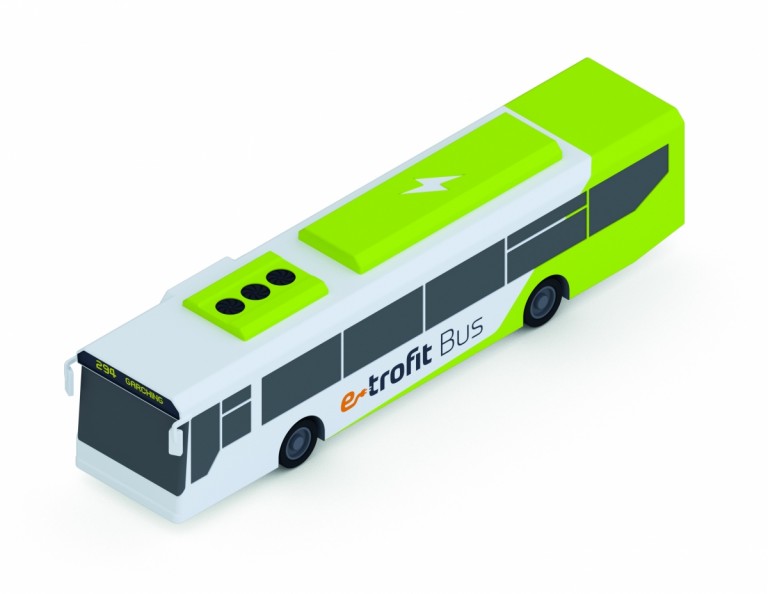 Statt bestehende Fahrzeuge durch neue Elektrofahrzeuge zu ersetzen, bietet in-tech mit dem e-troFit-Konzept eine Umrüstung von Bussen und anderen Nutzfahrzeugen auf Elektroantrieb an. Im Vergleich zum Neukauf ist eine Umrüstung bis zu 50 Prozent günstiger.